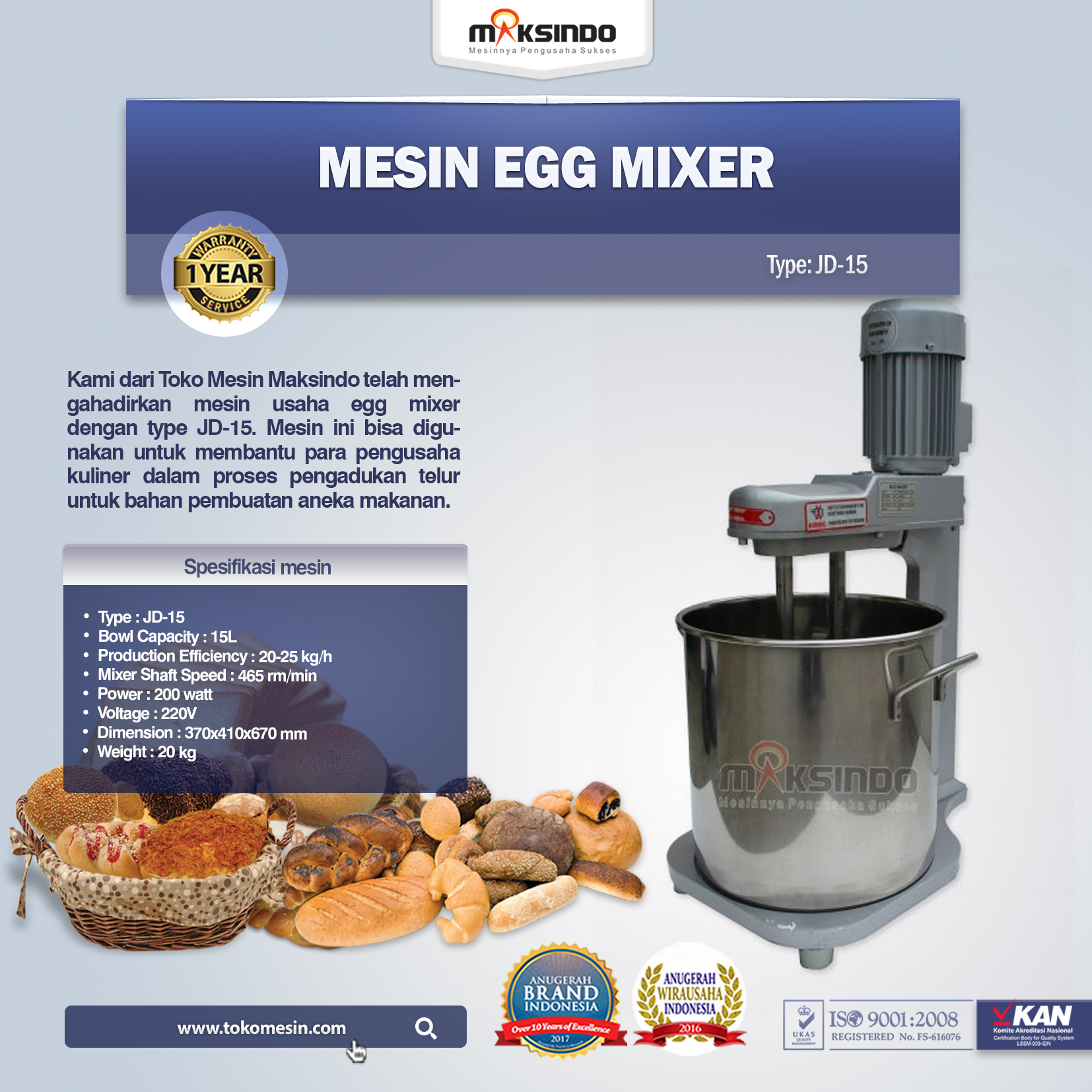 Spesifikasi Mesin Egg Mixer JD-15