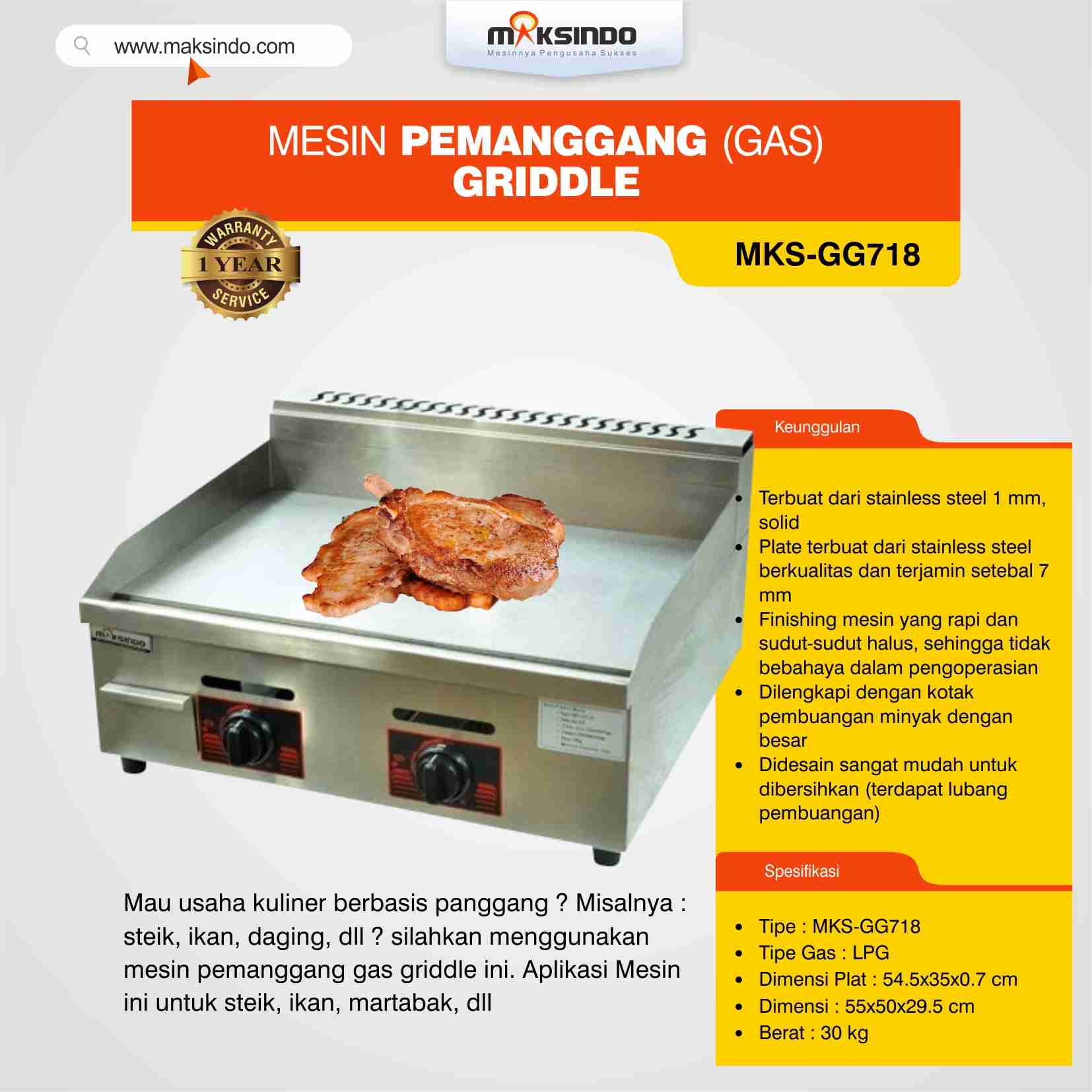 Berikut merupakan 10 keuntungan yang dapat diperoleh konsumen yang memakai mesin pemanggang griddle (gas) MKS-GG718 Maksindo: