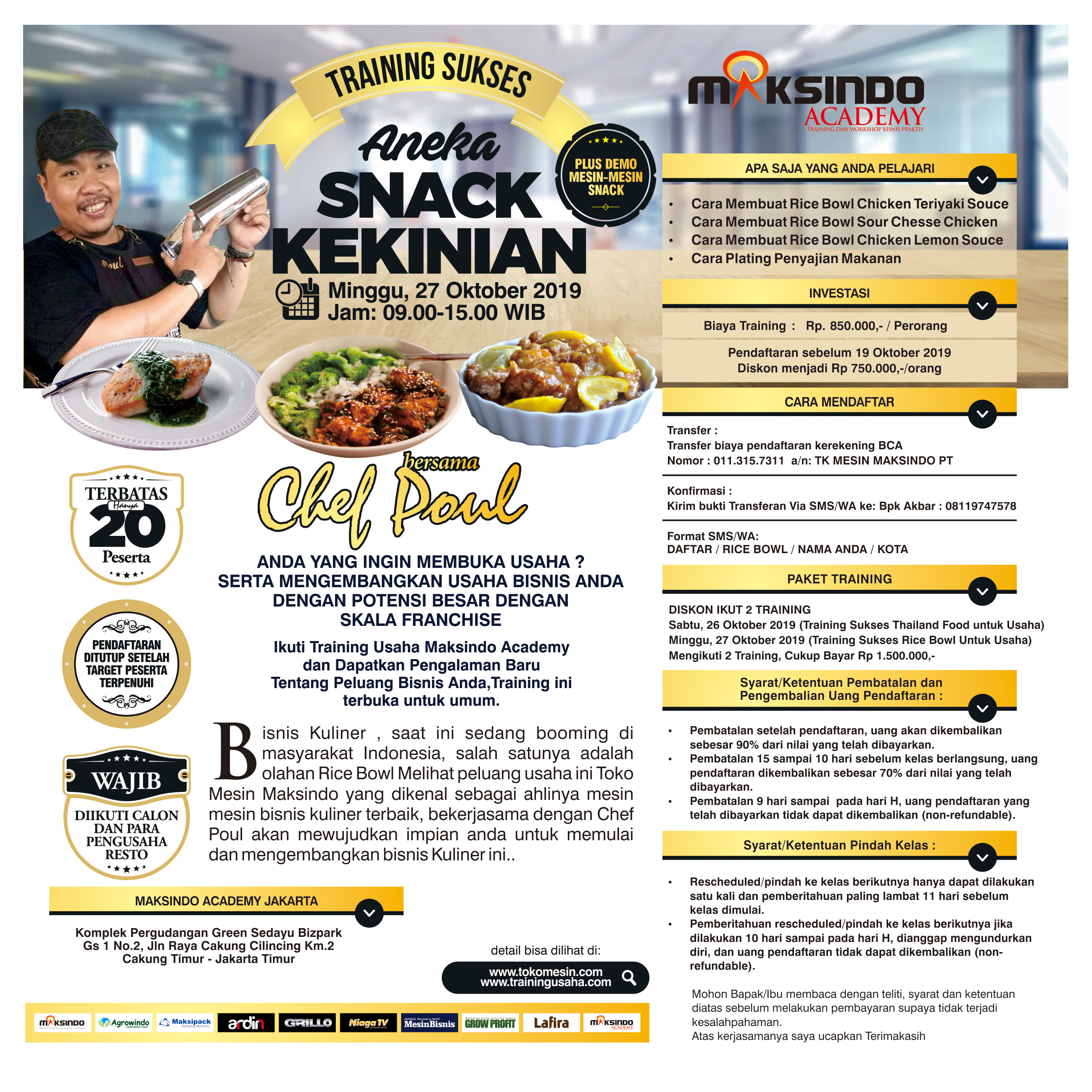 Food untuk Usaha)Minggu, 27 Oktober 2019 ( Training Sukses Rice Bowl Untuk